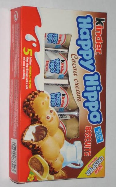 Kinder happy hippo cocoa cream combines hippo shaped biscuits with a cocoa flavoured cream filling.